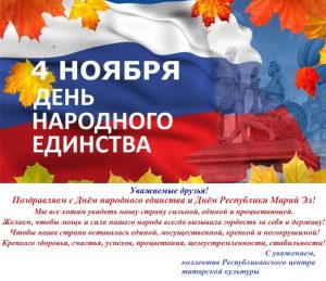 Дорогие друзья! С праздником — с Днём народного единства и Днём Республики Марий Эл!!!