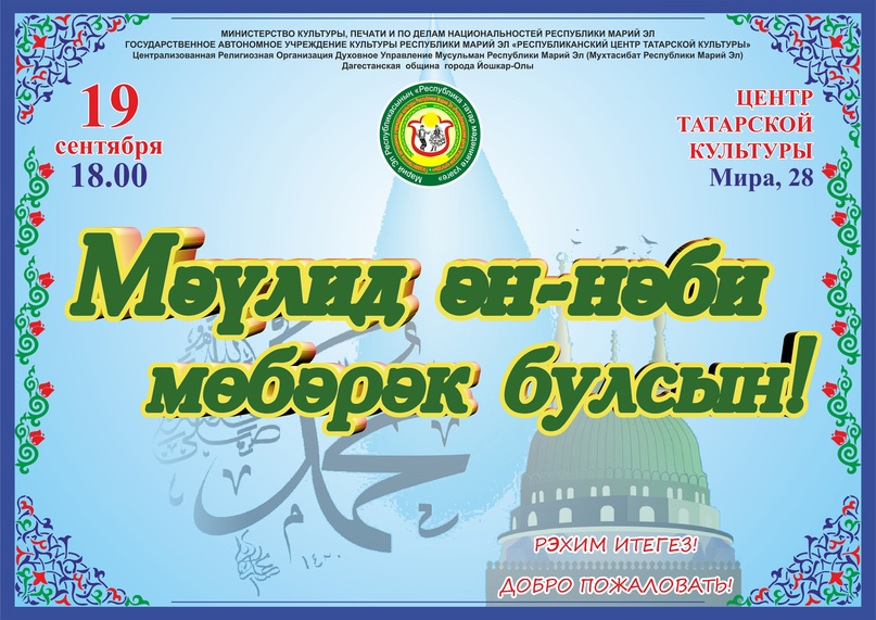Праздник Маулид ан-Наби состоится 19 сентября 2023 года в Республиканском центре татарской культуры.        Маулид ан-Наби является днём рождения последнего Пророка Мухаммеда (мир ему). В этот день многие мусульмане вспоминают Пророка(мир ему) и его свершения.      Мероприятие светское, где будет разъяснено зрителям основы сущности и истории возникновения этого праздника. Кульминацией праздника будет […]